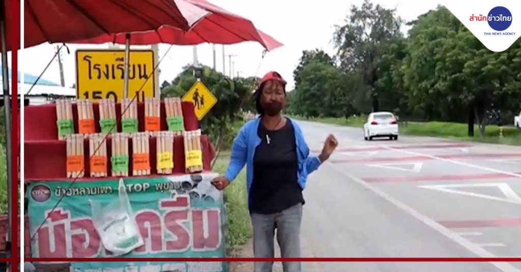 แม่ค้าคนนี้ชื่อ นางจันทร์เพ็ญ แจ้งศรีใส อาชีพรับจ้างขายข้าวหลาม บอกว่าตนเป็นคนสนุกสนาน พอได้ยินเสียงเพลงก็มักขยับตัวโยกย้ายตามจังหวะเสมอ แต่ด้วยอาชีพแม่ค้าขายข้าวหลาม ต้องขายตลอดทั้งวัน เช้ายันเย็น บางวันเกิดอาการง่วงนอน จึงนำวิทยุคู่ใจเครื่องนี้ติดตัวมาที่ร้าน เพื่อเปิดเพลงฟังแก้ง่วง และมักจะขยับตัวโยกย้าย ตามจังหวะเพลงเป็นที่สะดุดตา ต่อมาจึงลองเปิดเพลงจากวิทยุ และลุกขึ้นเต้นโชว์ลีลาโยกย้ายไปมาขณะขายข้าวหลาม ปรากฏว่าเป็นที่ชื่นชอบของลูกค้า ทำให้ข้าวหลามขายดีกว่าเดิม หมดเร็ว ได้กลับบ้านเร็วขึ้น จนทุกวันนี้ตนมีลูกค้าประจำ บางวันมีลูกค้าจอดรถเปิดเพลงสนุกๆ จากในรถให้โชว์ลีลาแดนซ์ก็มี ซึ่งตนก็เต็มใจ และรู้สึกดีใจที่ลูกค้าชื่นชอบ.-สำนักข่าวไทย