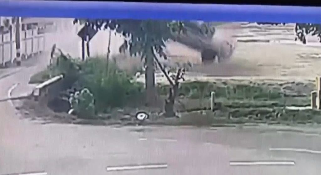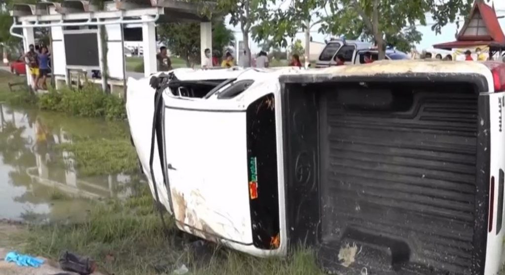 นี่เป็นภาพวงจรปิด บริเวณสี่แยกซินเอี่ยว ถนนสายโรงไฟฟ้า หมู่4 ต.ท่าข้าม อ.บางปะกง จ.ฉะเชิงเทรา จับภาพขณะที่ รถกระบะ โตโยต้า สีขาว ทะเบียน ผษ 8242 ชลบุรี ที่มีนายศิริศักดิ์ โสรัมย์ อายุ 28 ปี ขับมาจากซอยซินเอี่ยวแล้วกำลังจะออกมาทางสี่แยกซินเอี่ยว แต่เพราะขับรถด้วยความเร็ว จึงทำให้รถเสียหลักส่ายไปมา ก่อนที่รถพุ่งเข้าข้างทาง และพลิกคว่ำหลายตลบก่อนจะตกลงไปในคูน้ำ ทำให้นายศิริศักดิ์ได้รับบาดเจ็บขาซ้ายหัก เจ้าหน้าที่และพลเมืองดีต้องรีบช่วยเหลืออกจากตัวรถแล้วเร่งปฐมพยาบาลก่อนนำตัวส่งโรงพยาบาลจุฬารัตน์ 11 เบื้องต้นพบว่ารถพังเสียหายทั้งคันส่วนสาเหตุอยู่ระหว่างสอบสวนนายศิริศักดิ์อีกครั้งว่าเกิดจากอะไร โดยทางตำรวจได้ตรวจเลือดเพื่อวัดค่าแอลกอฮอล์ในเลือดด้วย.-สำนักข่าวไทย