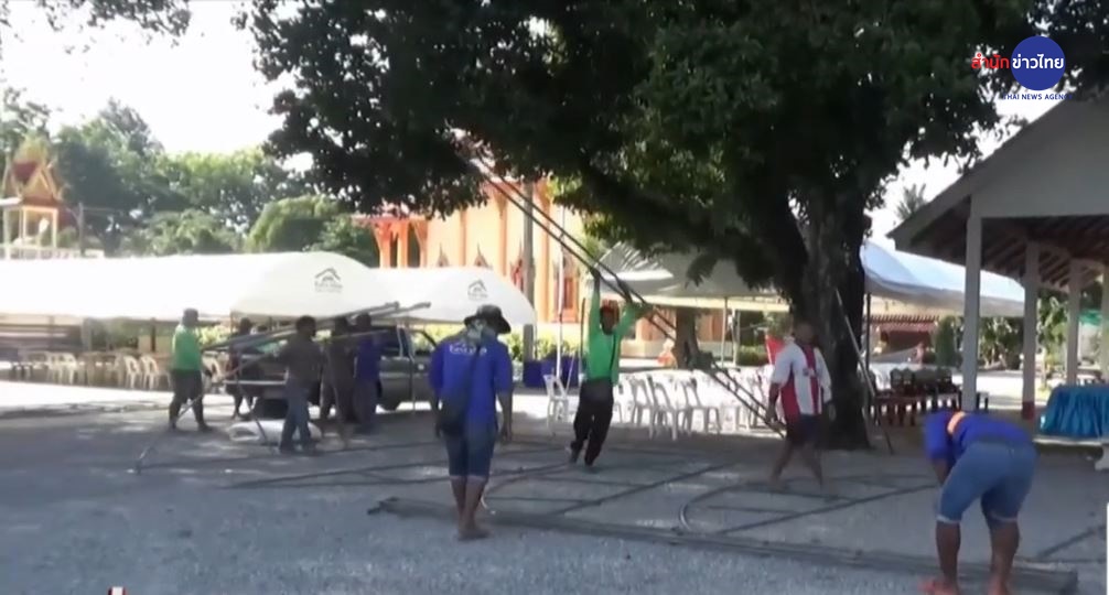 ส่วนที่วัดควนนาแค ต.บ้านควน อ.เมือง จ.ตรัง ซึ่งเป็นสถานประกอบพิธีทางศาสนาทั้ง 3 คนแม่ลูก พบว่าในเช้าวันนี้ทางครอบครัวได้เร่งจัดเตรียมสถานที่ ตั้งเต็นท์ โต๊ะ เก้าอี้ เตรียมพร้อมประกอบพิธีรดน้ำศพทั้ง 3 คน ในเวลาประมาณ 17.00 น.วันนี้ . – สำนักข่าวไทย