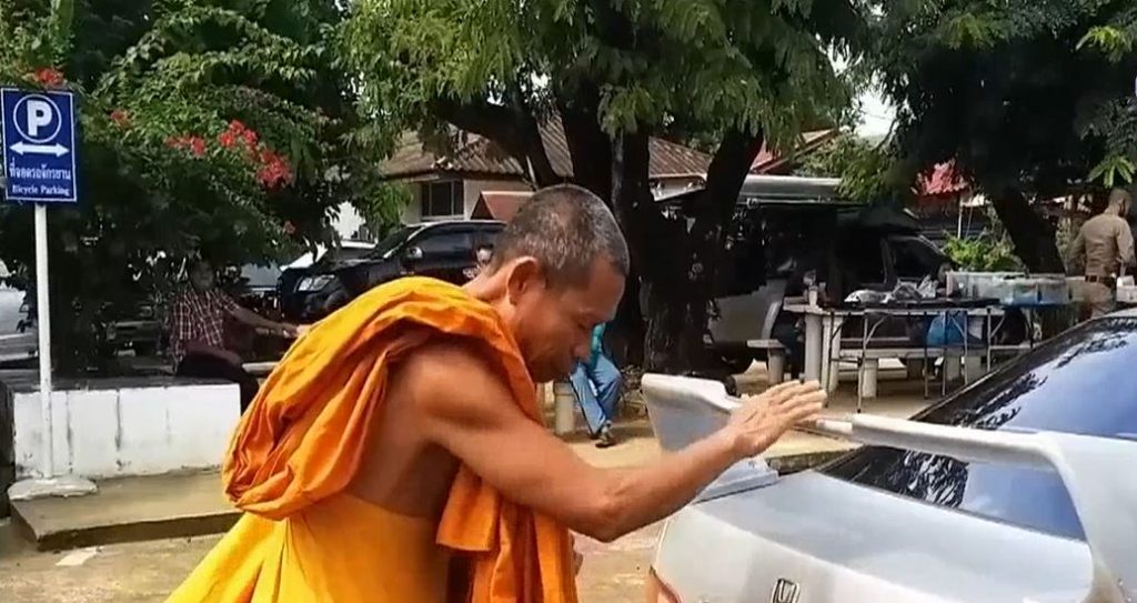 ศรีสะเกษ 19 ส.ค.-โลกโซเชียลกระหึ่ม ภาพรถยนต์ลากสุนัขไปบนถนน โดยรู้ตัวคนขับแล้วเป็นพระ ที่จังหวัดศรีสะเกษ ซึ่งล่าสุดได้เข้ามารับทราบข้อกล่าวหากับตำรวจแล้ว เผยเสียใจกับเรื่องนี้ และไม่รู้ว่าสุนัขตกรถตอนไหน
