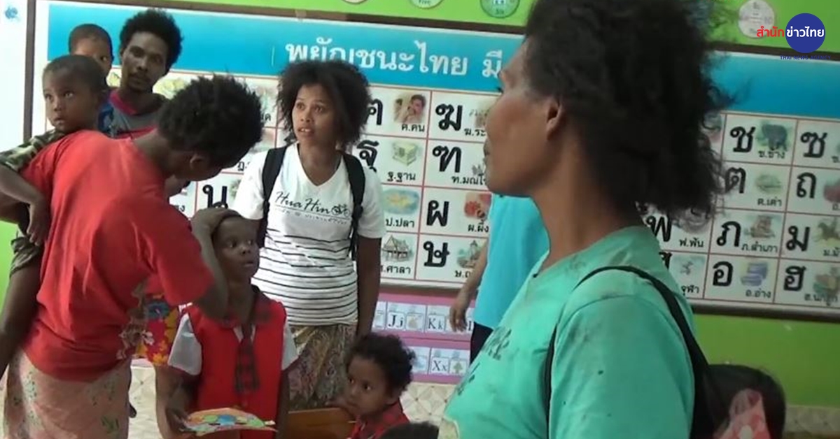 ตรัง 20 ส.ค. – กลุ่มเงาะป่าชนเผ่ามันนิ หรือซาไก บนเทือกเขาบรรทัด ส่งลูกๆ 4 คน มาเรียนชั้นอนุบาลเป็นปีแรก โดยคุณพ่อคุณแม่มาส่งเด็กๆ ถึงในห้องเรียน