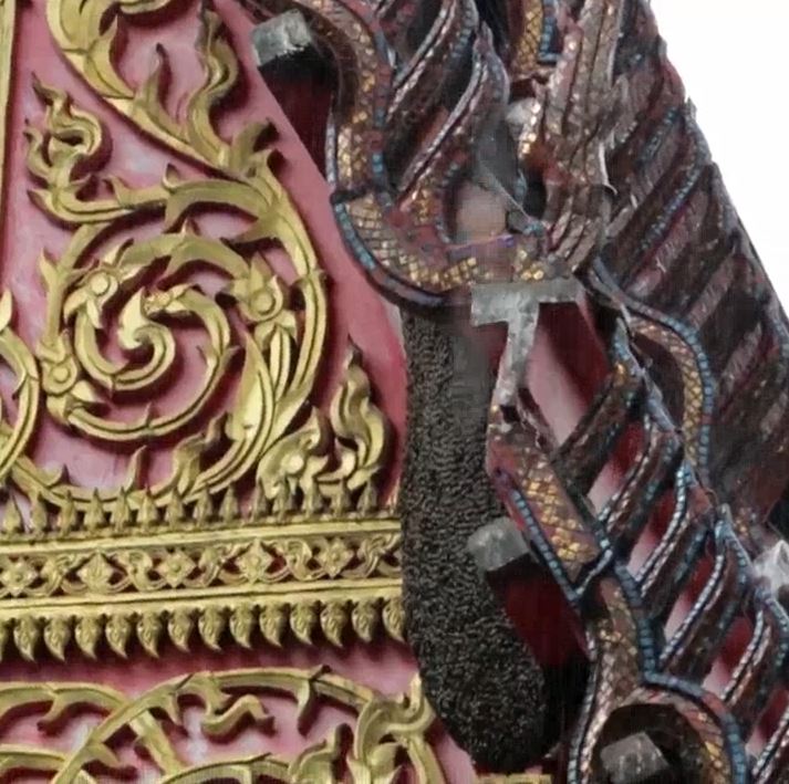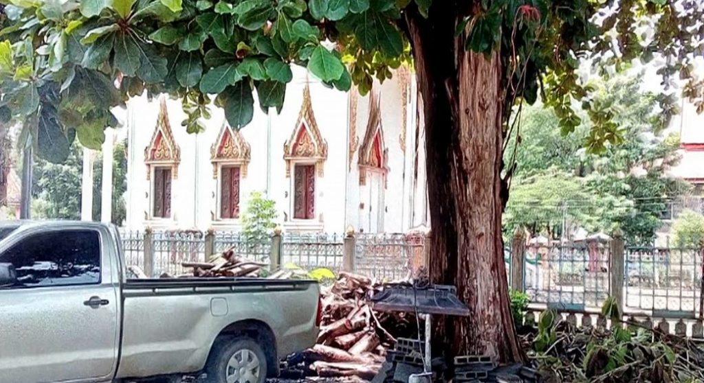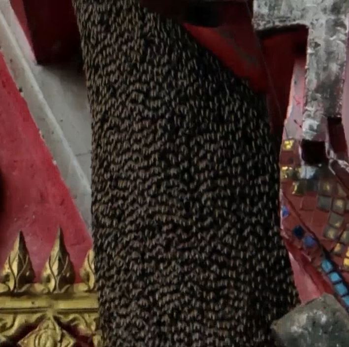 เพชรบูรณ์ 21 ส.ค.-ควันไฟจากร้านขายไส้กรอกอีสาน ลอยขึ้นไปรบกวนผึ้งหลวงที่ทำรังเกาะอยู่ที่หลังคาโบสถ์วัดใน จ.เพชรบูรณ์ ทำให้ผึ้งหลวงนับหมื่นตัวแตกรัง บินลงมาไล่ต่อยชาวบ้านที่มาจับจ่ายซื้อของที่บริเวณตลาดนัดของวัด รวมทั้งคุณยายวัย 77 ปีที่เจอผึ้งต่อยกว่า 50 ตัว