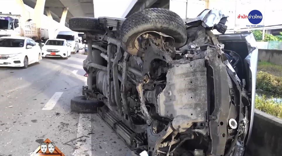 ฉะเชิงเทรา 23 ส.ค. – หนุ่มวัย 27 ปี กลับจากกินเลี้ยงกับเพื่อน ตอนเช้าขับเก๋งจะกลับห้อง แต่ดันขับสวนเลน พุ่งชนรถกระบะเต็มแรงบนถนนเทพรัตน (บางนา-ตราด) ช่องทางด่วน ขาเข้าชลบุรี หมู่ 5 ต.บางสมัคร อ.บางปะกง จ.ฉะเชิงเทรา มีผู้บาดเจ็บ 3 คน เจ้าตัวบอกไม่รู้ว่าขับมาชนคู่กรณีได้อย่างไร