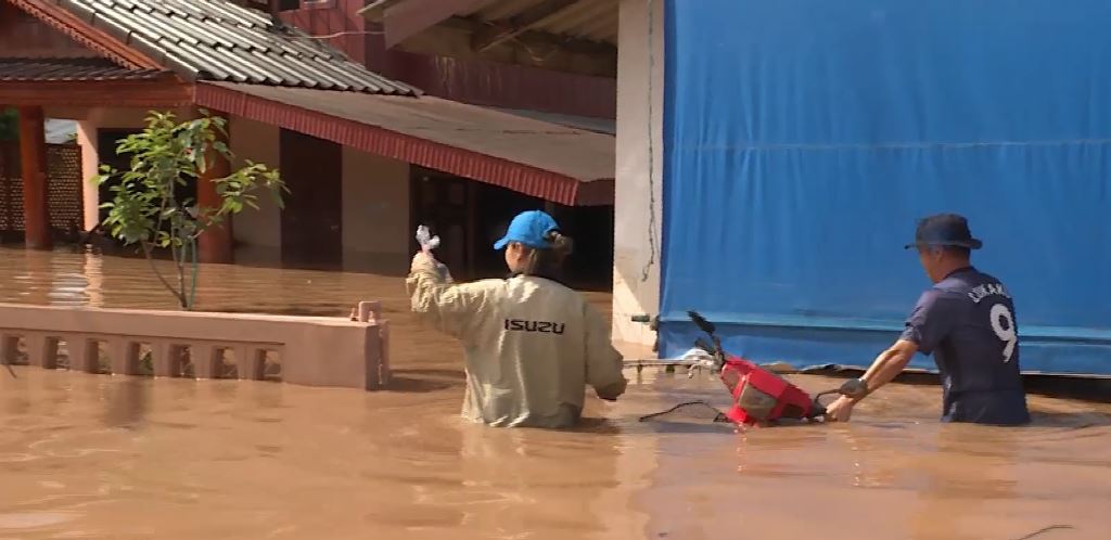 น่าน 23 ส.ค. – หลายหมู่บ้านในอำเภอเวียงสา จังหวัดน่าน ยังมีน้ำท่วมสูงกว่า 2 เมตร ชาวบ้านซึ่งใช้ชีวิตกลางน้ำท่วมมา 3 วัน เริ่มเจ็บป่วย โดยเฉพาะเด็กๆ บางส่วนต้องนำออกมาจากพื้นที่น้ำท่วม
