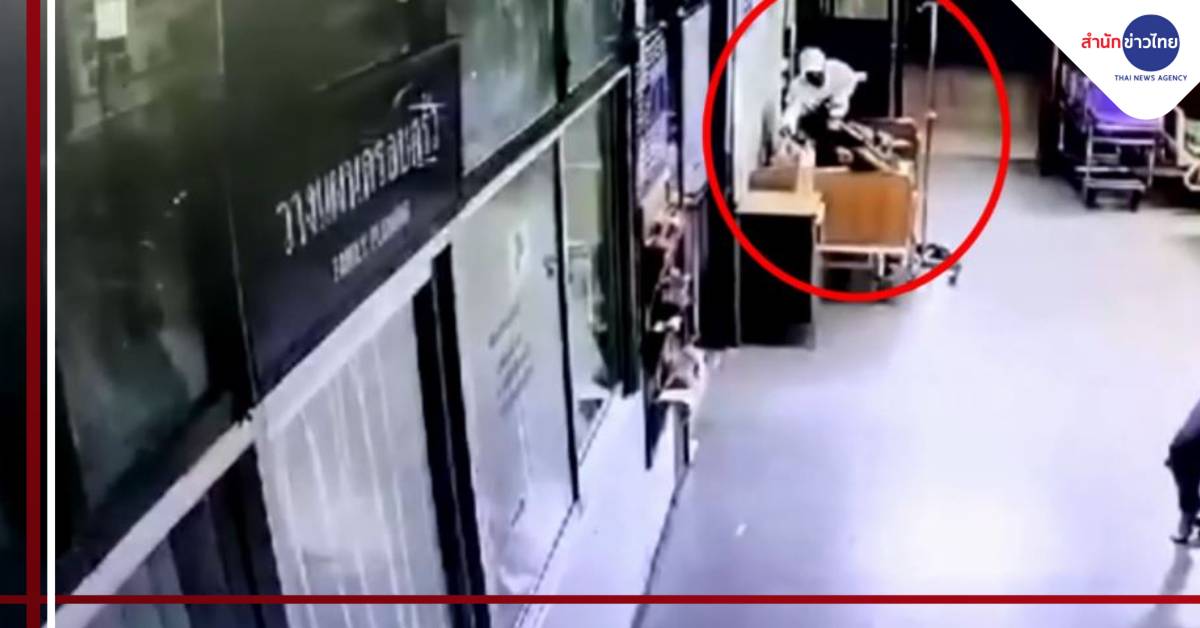 นี่เป็นภาพวงจรปิดที่จับภาพขณะคนร้ายเข้าไปลักทรัพย์คนป่วยและญาติ ในโรงพยาบาลสวรรค์ประชารักษ์ อำเภอเมืองนครสวรรค์ เมื่อกลางดึกที่ผ่านมา โดยในภาพจะเห็นคนร้ายเป็นชายสวมเสื้อแขนยาวสีขาว สวมหมวกแก๊ปสีขาว แอบย่องเข้ามาขโมยกระเป๋าสีชมพูของพี่สาวที่ท้อง และป้า ในกระเป๋ามีเงินสดรวม 7,300 บาท โทรศัพท์มือถือ 2 เครื่อง และบัตรเอทีเอ็ม 5-6 ใบ