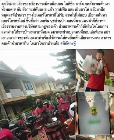 ภูเก็ต 24 ส.ค.-ผู้ใช้เฟซบุ๊กชื่อ Ntpp Tian โพสต์เรื่องราวหนุ่มแกล้งโทรหาฟู้ดแพนด้า สั่งกาแฟนับ 100 แก้ว ให้ส่งบ้านคนอื่น