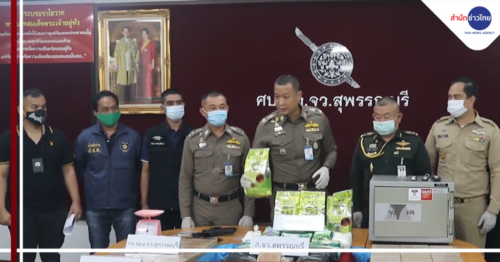 จากนั้นได้ควบคุมตัวผู้ต้องหาและของการมาแถลงการจับกุม พลตำรวจตรีนิธิธร จินตกานนท์ ผบก.ภ.จว.สุพรรณบุรี เปิดเผยว่าปฏิบัติการปราบปรามยาเสพติดครั้งนี้ เป็นเครือข่ายใหญ่ในพื้นที่ สามารถจับกุมผู้ต้องหา 5 คน ประกอบด้วย นายทัศน์พร หรือ โย พันธุสุข นางสาวดวงกลม หรือ โมส ปัชชา นายทรงกลด หรือตูม หรือ ดำ ผิวเกลี้ยง นายต๋อง สิทธิวิไล และน.ส.ณัฐธิดา หรือ ดรีม ชื่นขำ พร้อมของกลางยาเค น้ำหนัก 20 กก. เฮโรอีน น้ำหนัก 40 กก. ไอซ์ประมาณ 4 กก. ยาบ้า จำนวน 17 มัด หรือประมาณ 34,000 เม็ด กัญชาแห้ง 59 กรัม อาวุธปืนพกสั้น พร้อมตรวจยึดทรัพย์สิน เพื่อส่งตรวจสอบตาม พ.ร.บ.รถยนต์ 3 คัน เงินสด 110,000 บาท ทองรูปพรรณ และวัตถุมงคลเลี่ยมทอง 38 รายการ รวมมูลค่ากว่า 20 ล้านบาท