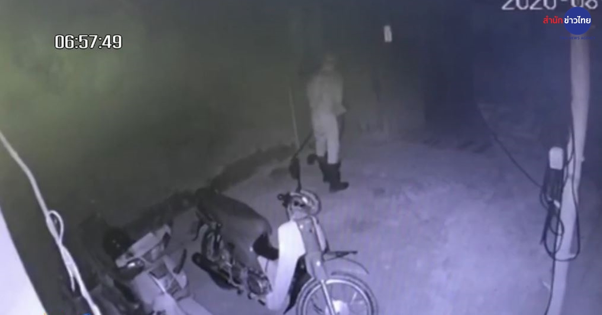 นี่เป็นภาพวงจรปิดที่บ้านพักของนายสถิต พึ่งเมือง ที่จับภาพคนร้ายใส่เสื้อกันฝนพกปืนยืนอยู่หน้าบ้านพักใน อ.สุวรรณคูหา จ.ร้อยเอ็ด ก่อนลงมือก่อเหตุยิงเบ้าตาทะลุหลังหูเสียชีวิต เหตุเกิดช่วงเช้ามืดวันที่ 25 สิงหาคมที่ผ่านมา กระทั่งวันต่อมามีคนไปพบศพนายสถิต ตำรวจ สภ.สุวรรณคูหา ตรวจสอบจนทราบตัวคนร้าย และเร่งไล่ล่าจับกุม