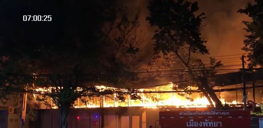 ชลบุรี 1 ก.ย.-เพลิงไหม้โกดังเก็บสินค้าที่พัทยา กลางดึก ลามเข้าอาคารที่พัก ชาวบ้านหนีตายอลหม่าน เบื้องต้นยังประเมินค่าไม่ได้