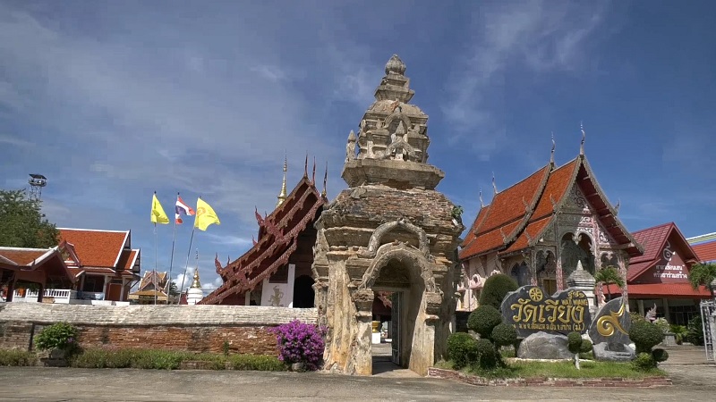 พระครูจันทธรรมวัฒน์ เจ้าอาวาสวัดเวียง ม.2 ต.ล้อมแรด อ.เถิน จ.ลำปาง เปิดเผยถึงปัญหารอยร้าวองค์พระธาตุเจดีย์วัดเวียงว่า หลังเกิดฝนตกหนักในพื้นที่ช่วงสัปดาห์ที่ผ่านมา พบรอยร้าวบริเวณด้านบนขององค์พระธาตุทั้ง 4 ทิศ โดยเฉพาะด้านทิศตะวันออกและทิศเหนือมีรอยปริแตกเป็นทางยาวกว่าด้านอื่น ทางวัดจึงเร่งแก้ปัญหาเบื้องต้นนำเหล็กมาค้ำยันไว้ รวมถึงนำพลาสติกใสมาคลุมจุดที่แตกร้าวป้องกันน้ำฝนซึมเข้าองค์พระธาตุ เพื่อไม่ให้เกิดความเสียหายเพิ่มขึ้น และหมั่นตรวจสอบทุกวันว่ามีรอยร้าวมากกว่าเดิมหรือไม่ เพราะเป็นองค์พระธาตุเก่าแก่ อายุราว 1,500 ปี