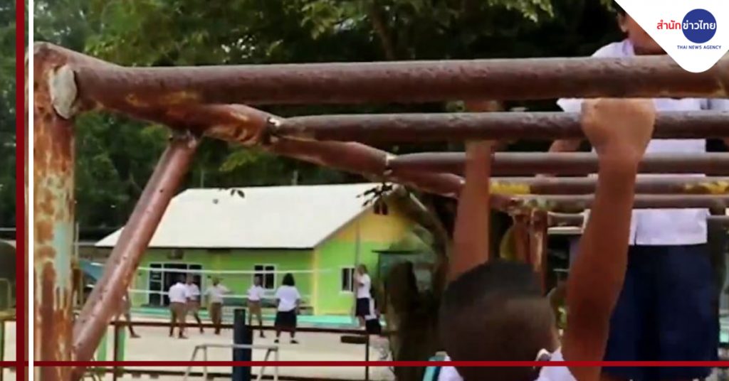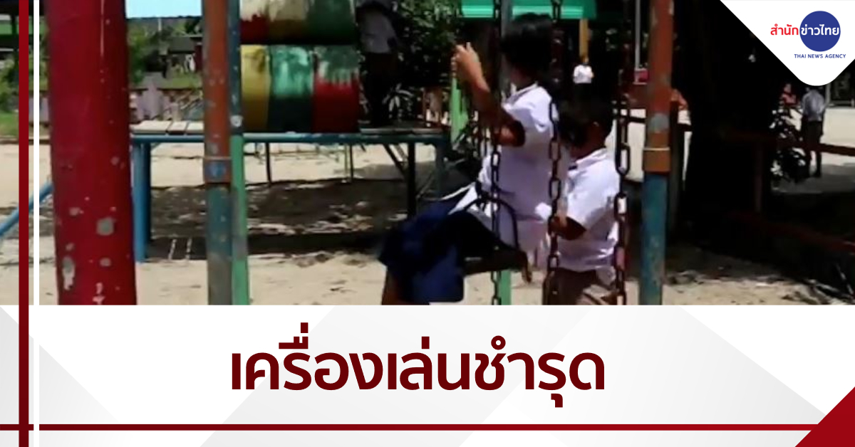เช่นเดียวกับชิงช้า โซ่ห้อยแผ่นกระดาษขาดห้อยโตงเตง ส่วนที่ซ่อมได้ ภารโรงของโรงเรียนทำการซ่อมแก้ไขพอให้เด็กเล่นแก้ขัด ส่วนอุปกรณ์เครื่องเล่นที่ยังพอหลงเหลือสภาพให้เห็นว่าเป็นเครื่องเล่น ไม่แตกต่างจากคำว่าพังชำรุด เพราะสนิมเกาะเกรอะกรัง หากเด็กไปเล่นแล้วเกิดเกี่ยวเป็นบาดแผล รับรองติดเชื้อบาดทะยักตาย.-สำนักข่าวไทย