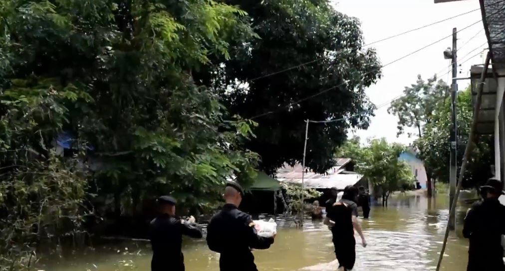 บ้านท่าข้าม หมู่ 1 บ้านวังมน หมู่ 4 และบ้านโคกสะแบง หมู่ที่ 5 ต.ท่าข้าม อ.อรัญประเทศ ยังมีน้ำท่วมขังในพื้นที่ระดับน้ำสูง 30-60 เซนติเมตร เดินทางเข้าออกหมู่บ้านด้วยความลำบาก เจ้าหน้าที่ กรมทหารพรานที่ 12 ลงพื้นที่ช่วยเหลือนำอาหาร น้ำดื่ม ออกแจกจ่ายให้กับชาวบ้าน เพื่อบรรเทาความเดือดร้อน พร้อมนำกำลังพลจิตอาสาช่วยชาวบ้านเก็บกวาดดินโคลน เศษซากไม้และขยะ ในพื้นที่ที่ระดับน้ำลดเป็นปกติ และขนย้ายสินค้าการเกษตรกลับเข้ายุ้งฉาง. – สำนักข่าวไทย