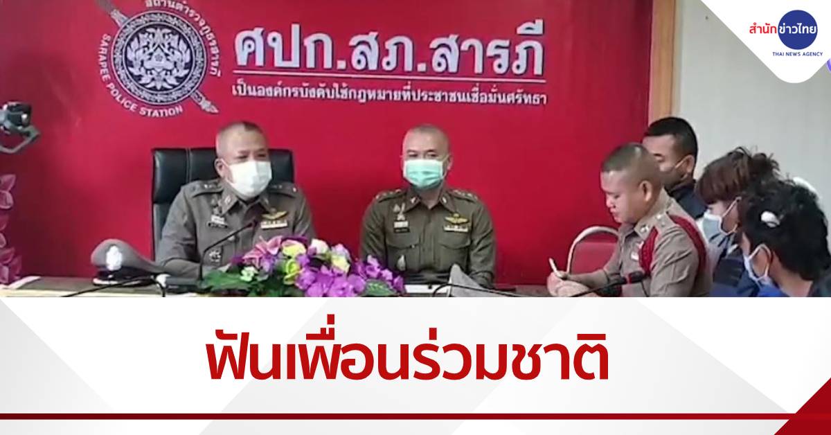 2 ผู้ต้องหาชาวเมียนมา นายปืน หรือส่วยอุ่ง และนายจายอ้ายกิ หรือ สอง ถูกตำรวจเชียงใหม่คุมตัวมาแถลงข่าว พร้อมกับของกลางสนับมือ และมีดดาบยาว 69 เซนติเมตร หลังก่อเหตุยกพวกนับสิบบุกไปทำร้ายนายหลู่ หรือ ยอด หัวหน้าคนงานก่อสร้างชาวเมียนมา ที่ห้องเช่าหมู่บ้านเชียงขาง อ.สารภี ก่อนที่นายปืนจะใช้มีดดาบฟันคอเพื่อนร่วมชาติ 1 คน เกือบขาด เหตุการณ์นี้เกิดขึ้นเมื่อช่วงค่ำวันที่ 1 มกราคม มีผู้บาดเจ็บหลายคน