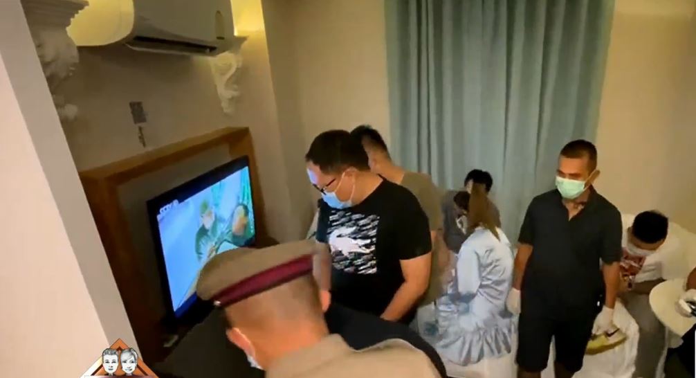 การบุกตรวจค้นครั้งนี้ นำโดย พ.ต.อ.เอกภพ อินทวิวัฒน์ รองผู้บังคับการตำรวจภูธรจังหวัดชลบุรี พ.ต.อ.พิศิษฏ์ พูลทรัพย์ ผกก.สภ.เมืองพัทยา จ.ชลบุรี พ. ต. อ.ชิตเดชา สองห้อง ผกก.สภ.หนองปรือ ในฐานะหัวหน้าชุดศูนย์ปราบปรามคนร้ายข้ามชาติตำรวจภูธรจังหวัดชลบุรี นายพรชัย สังข์เอียด ปลัดอำเภอบางละมุง พร้อมด้วยเจ้าหน้าที่สาธารณสุข อ.บางละมุง หลังสืบทราบว่ามีการลักลอบเล่นการพนัน ไม่สนใจประกาศ พ.ร.ก.ฉุกเฉิน สามารถจับกุมนักพนันได้ 21 คน เป็นชาวจีน 14 คน ชาวไทย 5 คน สิงค์โปร 1 คน และชาวกัมพูชา 1 คน พร้อมของกลางโต๊ะกลมและเก้าอี้ 1 ชุด ไพ่ชิปเงินมูลค่ากว่า 10 ล้านบาท จึงควบคุมตัวผู้ต้องหาพร้อมของกลางส่งพนักงานสอบสวน สภ. เมืองพัทยาดำเนินคดีในฐานความผิด 1.ลักลอบเล่นพนัน 2.มั่วสุมฝ่าฝืนข้อกำหนดประกาศหรือคำสั่งที่ออกตาม พ.ร.ก.การบริหารราชการในสถานการณ์ฉุกเฉิน พ.ศ.2548 และเป็นบุคคลต่างด้าวเดินทางเข้าเมืองอย่างผิดกฎหมาย