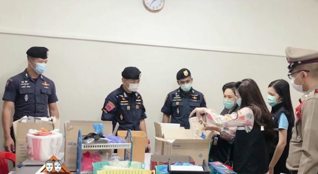 พล.ต.ต.สำราญ นวลมา รอง ผบช.น. กล่าวว่า สืบเนื่องจากสถานการณ์การแพร่ระบาดของเชื้อไวรัส Covid-19 ส่งผลกระทบต่อประชาชนและสร้างความเสียหายให้แก่ประเทศชาติ และมีความต้องการในการใช้ผลิตภัณฑ์ทางการแพทย์ ทำให้มีการลักลอบจำหน่ายอุปกรณ์ทางการแพทย์ที่ไม่ได้มาตรฐาน จึงสั่งการให้เจ้าหน้าที่แกะรอยจนสืบทราบว่ามีการลักลอบผลิตและซุกซ่อนถุงมือยางทางการแพทย์ที่ใช้แล้วนำกลับมาแพ็กจำหน่ายใหม่ จึงสนธิกำลังเข้าตรวจค้น ซึ่งพบของกลางหลายรายการ เข้าข่ายความผิดตาม พ.ร.บ.เครื่องมือแพทย์ พ.ศ.2551 ฐานไม่จดทะเบียนสถานประกอบการผลิตเครื่องมือแพทย์และฐานผลิตซึ่งเป็นเครื่องมือแพทย์ที่ไม่ปลอดภัยในการใช้