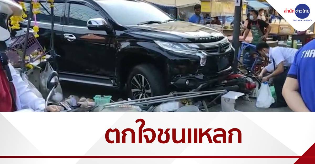 ขณะที่เจ้าของรถ เป็นสาวพนักงานบริษัท เปิดเผยว่า ขณะกำลังเลี้ยวรถออกจากซอย ถูกรถจักรยานยนต์ขี่ตัดหน้า ทำให้ตกใจ จะเหยียบเบรกแต่กลายเป็นเหยียบคันเร่งแทน ทำให้รถพุ่งเข้าชนจักรยานยนต์และร้านค้าหน้าตลาดพังเสียหาย ทั้งนี้จะรับผิดชอบชดใช้ค่าเสียหายให้ทั้งหมด . – สำนักข่าวไทย