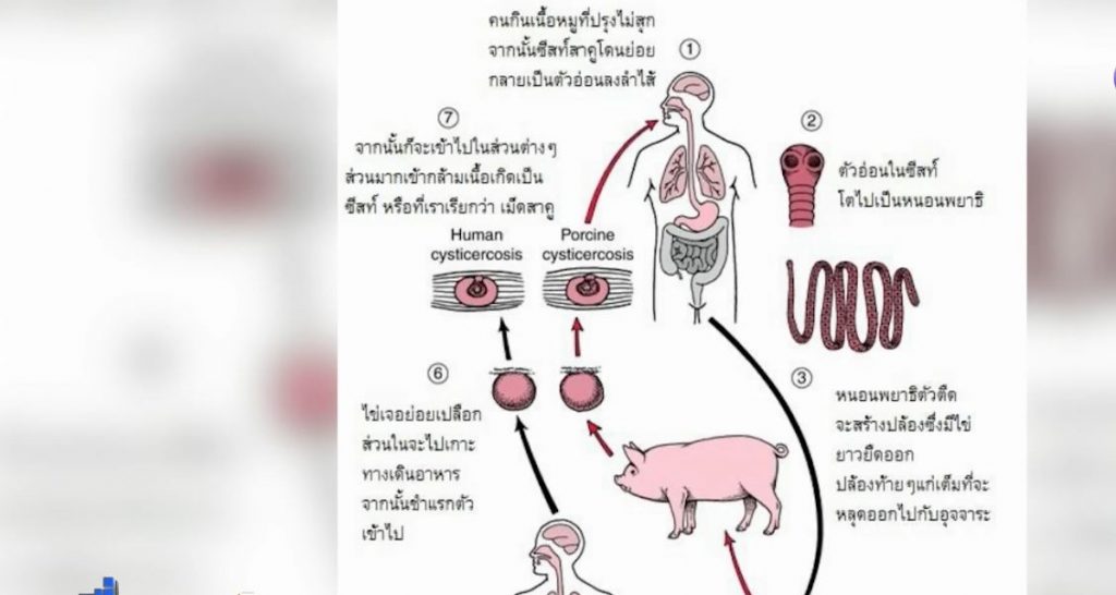 ทั้งนี้ เมื่อพยาธิเข้าไปในถุงท่อดี ทำให้การไหลเวียนของท่อน้ำดีไหลไม่สะดวก มีโอกาสทำให้เกิดการอักเสบในท่อน้ำดีได้เช่นกัน เหมือนคนไข้รายนี้ บางทีคนไข้อาจขย้อนหรืออาเจียน ไข่พยาธิอาจขึ้นไปที่กระเพาะอาหาร และแตกออกมาไชเข้าไปที่กระแสเลือด แล้วก็ไปที่สมอง ทำให้สมองผิดปกติได้ เช่น เกิดอาการชักเกร็ง หรืออาจไปอยู่ที่อวัยวะอื่นๆ ก็ได้ แต่จะไม่รุนแรงเท่าอยู่ในสมอง สำหรับการป้องกันพยาธิง่ายมาก แค่ไม่กินเนื้อหมูหรือเนื้อวัวดิบ ปรุงให้สุกพยาธิก็ตาย . – สำนักข่าวไทย