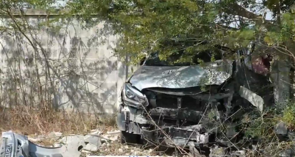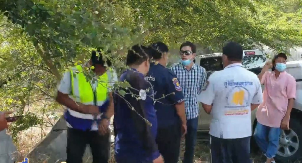เหตุเกิดบริเวณถนนเลียบทางรถไฟ-ไปคลองวาฬ ต.เกาะหลัก อ.เมืองประจวบคีรีขันธ์ ที่เกิดเหตุพบรถกระบะสีบรอนซ์-เงิน ทะเบียน 2ฒญ 8652 กรุงเทพมหานคร พุ่งทะลุกำแพงพังยับ กันชนหน้าหลุด ห่างออกไปประมาณ 5 เมตร พบเสาไฟฟ้าริมถนนมีร่องรอยถูกเฉี่ยวชน โคมหลอดไฟขนาดใหญ่หล่นแตกกระจาย