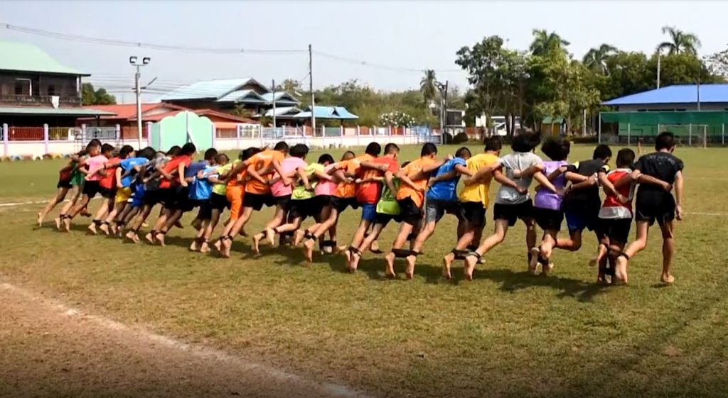 นายดนัย อู่ทรัพย์ ครูชำนาญการพิเศษ บอกว่า ทุกวันเด็กๆ จะจับคู่ หรือจับกลุ่ม 3-4 และ 5 คน ใช้สายรัดข้อเท้าผูกติดกัน ขณะเดิน นั่ง และทำกิจกรรมต่างๆ เพื่อให้เกิดความเคยชิน ฝึกปรับตัว การใช้ชีวิตอยู่ร่วมกัน และเป็นเคล็ดลับสำหรับการคัดเลือกนักกีฬาวิ่ง 31 ขาสามัคคี กีฬาประเพณีที่สืบทอดรุ่นสู่รุ่นมากว่า 14 ปี จากนักเรียนกว่า 500 คน คัดให้เหลือเพียง 30 คน เพื่อเป็นตัวแทนของโรงเรียนในการเข้าแข่งขัน ระดับประเทศ