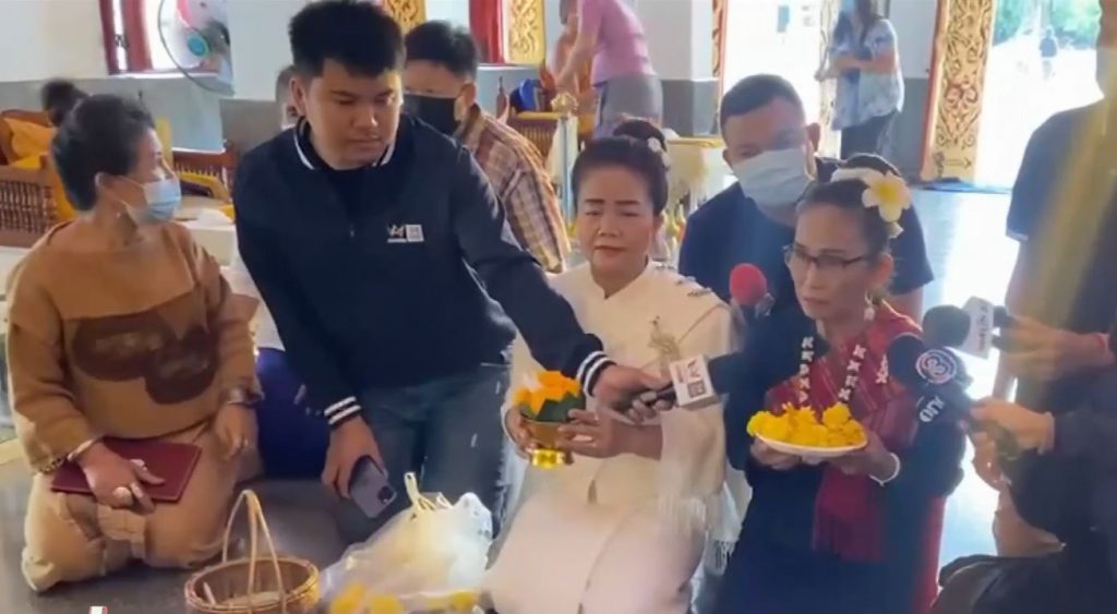 ก่อนทำพิธีเจ้าหน้าที่วัดมาทำความเข้าใจกับทั้งคู่ว่าห้ามสาปแช่งหรือพูดสิ่งที่ไม่ดีต่อกัน ขณะสาบานหน้าองค์พระประธาน จากนั้นนางไพมณีได้เริ่มกล่าวก่อน โดยบอกว่าไม่ได้มาสาบาน แต่มาเพื่อหาว่าลอตเตอรี่ไปอยู่กับใคร หากไม่ถูกรางวัลก็ยอมรับ แต่หากถูก อยากให้คนเอาไปมาตกลงกัน หากเคลียร์ไม่ได้ก็ปล่อยให้เป็นหน้าที่ของตำรวจ