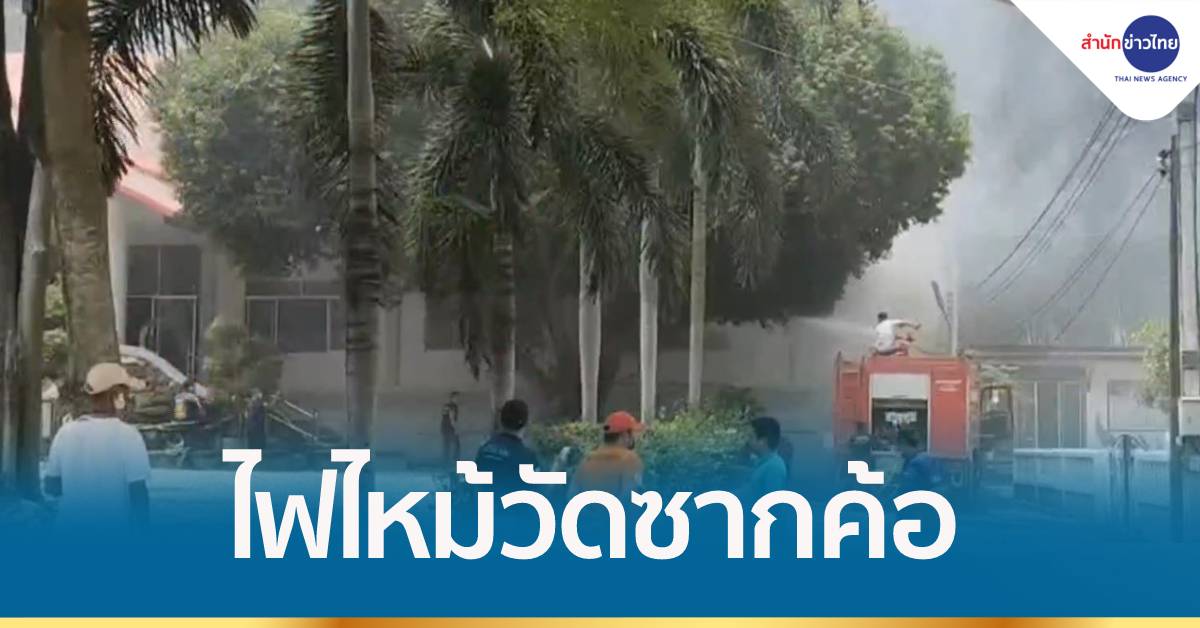 เจ้าหน้าที่พยายามฉีดน้ำสกัดเพลิงที่โหมลุกไหม้ศาลาการเปรียญวัดซากค้อ ม.7 ต.สุรศักดิ์ อ.ศรีราชา จ.ชลบุรี อย่างรุนแรง ฝ้าเพดานหล่นลงพื้นได้รับความเสียหาย ควันไฟปกคลุมไปทั่วบริเวณ ทำให้ยากต่อการเข้าไปดับไฟด้านใน ทำได้เพียงฉีดน้ำเข้าไปในจุดเกิดเหตุ โดยใช้เวลาประมาณ 1 ชั่วโมง จึงควบคุมเพลิงไว้ได้ พบว่าสิ่งของภายในห้องเก็บของที่มีทั้งชุดสังฆทาน ผ้าไตร จีวร และของต่าง ๆ ถูกไฟไหม้เสียหายทั้งหมด