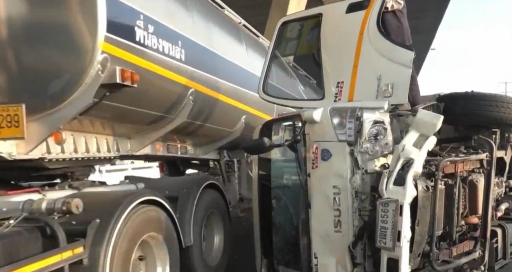 ฉะเชิงเทรา 2 พ.ค. – รถบรรทุกยางแตก ชนราวสะพาน ข้ามคลองสำโรง ถนนเทพรัตน (บางนา-ตราด) บาดเจ็บ 3 คน