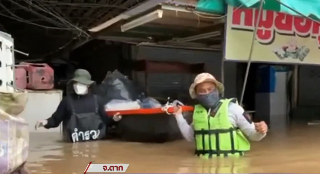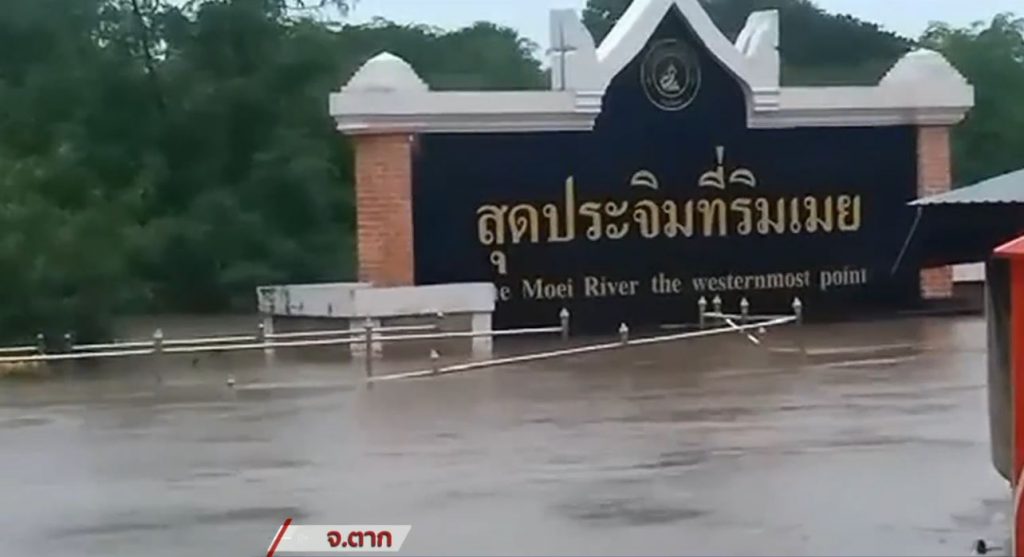สถานการณ์น้ำท่วมที่ชายแดนจังหวัดตากโดยพื้นที่ 5 อำเภอแนวชายแดนจังหวัดตากทุกอำเภอ ยังคงมีฝนตกหนักอย่างต่อเนื่อง โดยเฉพาะพื้นที่อำเภอแม่สอดที่สถานีตรวจอากาศอำเภอแม่สอด สามารถตรวจวัดปริมาณน้ำฝนในรอบคืนที่ผ่านมาสูงถึง 90 มิลลิเมตร ซึ่งประมาณน้ำฝนที่ตกอย่างหนักแบบไม่หยุดมายาวนานกว่า 7 วัน ยิ่งทำให้สถานการณ์น้ำท่วมในเขตชายแดนอำเภอแม่สอดส่อวิกฤติในอีกไม่กี่ชั่วโมงข้างหน้านี้ ซ้ำเติมทั้งปัญหาผู้ติดเชื้อโควิดที่มียอดติดเชื้อสูงแบบรายวันและยังมาโดนน้ำท่วมซ้ำทำให้ชาวอำเภอแม่สอดและอำเภอข้างเคียงมีจิตใจแย่ลง