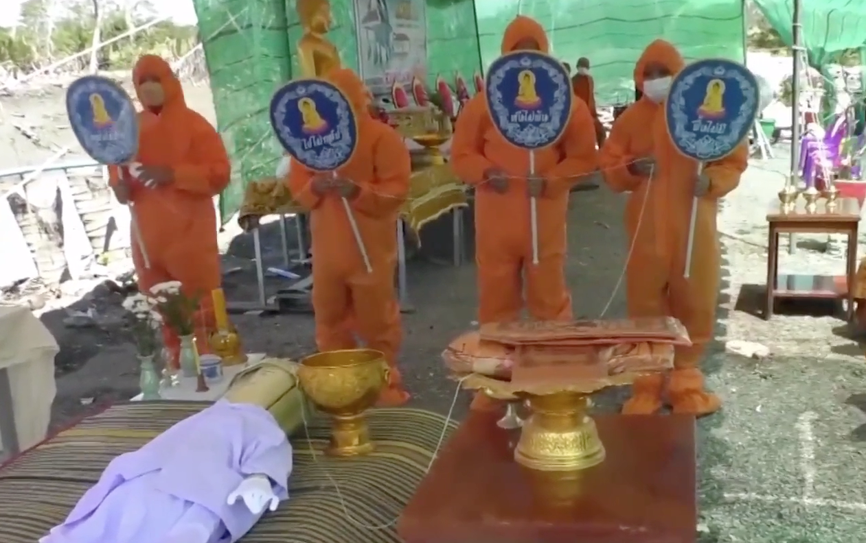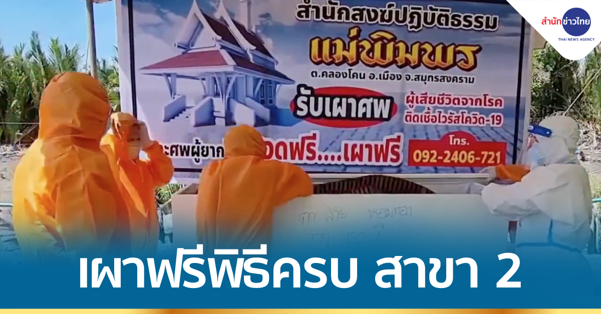 สมุทรสงคราม 23 ส.ค.- หลวงพ่อแดงจัดพิธีเผาต้นกล้วย เปิดเตาเผาศพโควิดสาขา 2 ที่สำนักปฏิบัติธรรมแม่พิมพร ต.คลองโคน จ.สมุทรสงคราม พระสงฆ์สวมชุด PPE ทำเองพิธีครบ