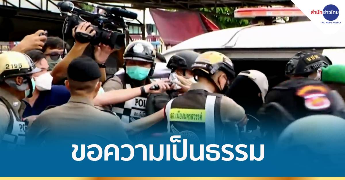 ส.ต.ต.ปวีณ์กร คำมาเร็ว ถูกคุมตัวออกมาเป็นคนแรก โดยระหว่างควบคุมตัวเจ้าหน้าที่ไม่ได้ให้ผู้ต้องหาสวมหมวกไอ้โม่ง แม้จะมีหมวกและแมสก์ปิดเอาไว้ แต่ก็เห็นได้ว่าผู้ต้องหามีสีหน้าไม่สบายใจ โดยเฉพาะ ส.ต.ต.ปวีณ์กร ซึ่งได้ร่ำไห้ และตะโกนบอกกับผู้สื่อข่าวว่า ขอความเป็นธรรมให้ผมด้วย ทางด้านดาบโบ้ หรือ ด.ต.วิสุทธิ์ บุญเขียว ซึ่งสวมเสื้อกล้ามสีดำแดง กล่าวสั้นๆว่า เดี๋ยวความจริงปรากฏเอง
