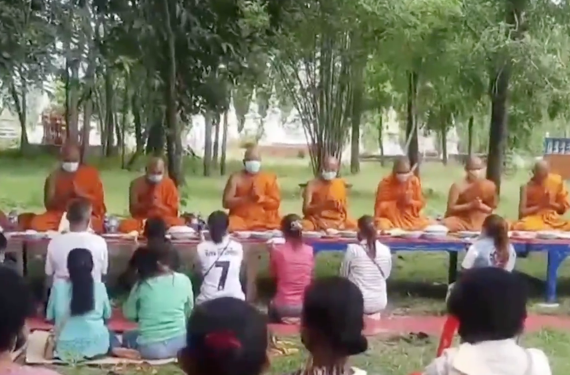 นายสุเทพ ดอกจันทร์ กำนันตำบลหนองขวาว พร้อมด้วยชาวบ้านหนองน้ำขุ่น ต.หนองขวาว อ.ศีขรภูมิ จ.สุรินทร์ พากันมาทำบุญกลางป่าช้า หลังจากที่มีชาวบ้านที่เดินทางมาจากต่างจังหวัดถูกนำตัวมากักตัว ที่วัดข้างป่าช้าแห่งนี้ แล้วฝันว่ามีคนที่ตายแล้วมาบอกเลข พากันซื้อหวย ถูก 3 ตัวตรง และ 2ตัวเลขท้าย ตลอดจนถูกรางวัลลอตเตอรี่รางวัลที่ 3 อีกด้วย จึงได้รวบรวมเงินที่ได้จากการเสี่ยงโชค พากันนิมนต์พระสงฆ์จำนวน 11รูป ทำบุญถวายสังฆทานให้กับผู้ที่ล่วงลับไปแล้ว โดยนำด้ายสายสิญจน์ มาผูกมัดโยงจากศาลปู่ตา และบอกอีกว่างวดที่จะถึงให้มาแล้ว 435 และ 11