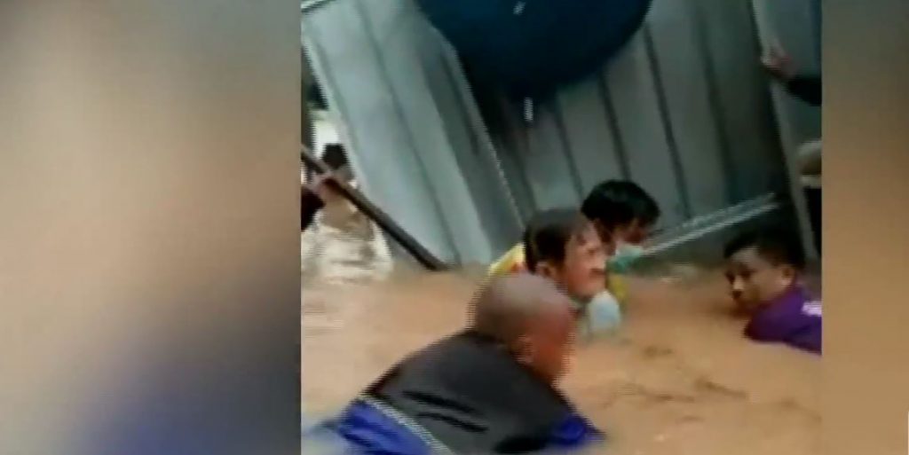 ส่วนที่เห็นอยู่นี้เป็นนาทีระทึก ขณะเจ้าหน้าที่กำลังช่วยเหลือนายขั้ว มีแหยม อายุ 79 ปี ที่ได้รับบาดเจ็บ ร่างติดอยู่ในซากบ้าน ที่ ต.บางระกำ อ.บางระกำ จ.พิษณุโลก ที่สไลด์ลงไปในแม่น้ำยม หลังเกิดฝนตกหนัก ถูกแผ่นปูนขนาดใหญ่ทับที่บริเวณขาใต้น้ำ ขณะที่ฝนยังคงตกต่อเนื่อง ดินบริเวณหลังบ้านก็ยังไหลลงมาเรื่อยๆ เจ้าหน้าที่และชาวบ้านต้องเร่งช่วยเหลืออย่างเร่งด่วน โดยใช้วิธีขยับซากบ้านออกจากบริเวณขาให้มากที่สุด แต่ก็เป็นไปด้วยความยากลำบาก เพราะน้ำท่วมบริเวณลำตัวนายขั้ว ประกอบกับน้ำขุ่นมาก มองไม่เห็นใต้พื้นน้ำ สุดท้ายต้องใช้แท่งเหล็กงัดแผ่นปูนที่ทับขา ให้นายขั้วขยับขาออกมาได้สำเร็จ มีบาดแผลฉีกขาดที่ฝ่าเท้าด้านซ้าย และมีอาการอ่อนเพลีย จึงเร่งนำตัวส่งโรงพยาบาล