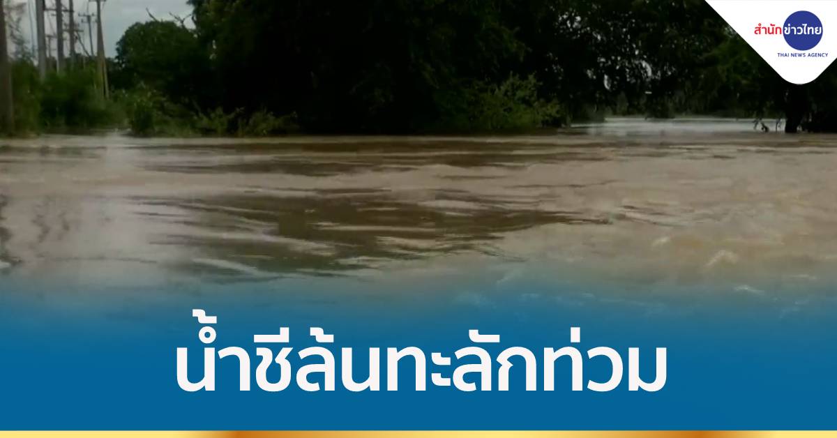 ชัยภูมิ 21 ก.ย. – มวลน้ำไหลสมทบลงแม่น้ำชี น้ำล้นทะลักท่วมหลายอำเภอ จ.ชัยภูมิ พื้นที่การเกษตรเสียหายเป็นวงกว้าง หมู่บ้านเสี่ยวน้อย ต.บ้านค่าย อ.เมือง เดือดร้อนหนักสุด ถนนเข้าออกหมู่บ้าน ถูกน้ำท่วมสูงกว่า 2 เมตร