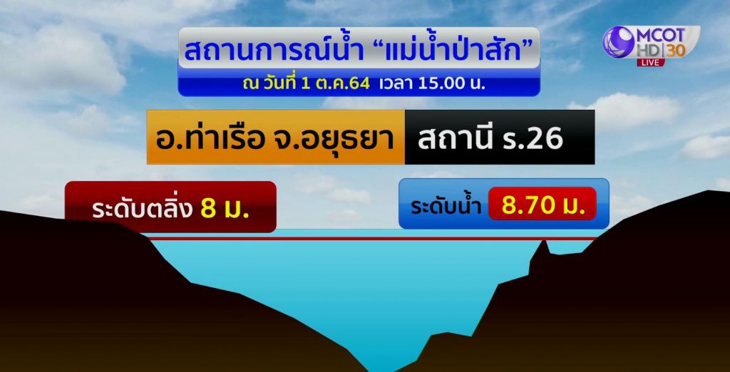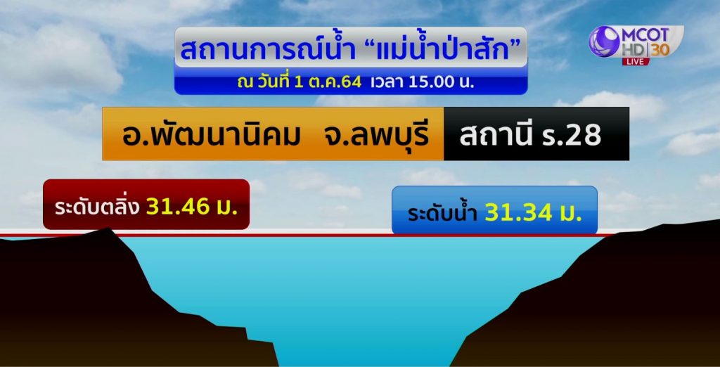 น้ำไหลผ่านขนาดนี้ น้ำในลำน้ำป่าสักเป็นอย่างไร โดยเฉพาะเขื่อนป่าสัก จุดที่เห็นเป็นบริเวณสถานีพัฒนานิคม จังหวัดลพบุรี มีปริมาณน้ำอยู่ 1,274 ลูกบาศก์เมตรต่อวินาที น้ำที่มีอยู่นี้อีก 17 ชั่วโมง น้ำจะไหลไปที่สถานีอำเภอเมืองสระบุรี แต่จุดนี้เป็นที่น่าสังเกต เพราะข้อมูลจากกรมชลประทานบอกว่า ไม่สามารถระบุปริมาณน้ำได้ เพราะต้องดูอิทธิพลจากฝายหรือเขื่อนควบคุม จากนั้นเมื่อพ้นสถานีวัดระดับน้ำจุดนี้ไปอีก 10 ชั่วโมง น้ำจะไหลถึงเขื่อนพระรามหก มาท้ายเขื่อนที่อำเภอท่าเรือ จังหวัดพระนครศรีอยุธยา เมื่อถึงจุดนี้ปริมาณน้ำจะอยู่ที่ 856 ลูกบาศก์เมตรต่อวินาที