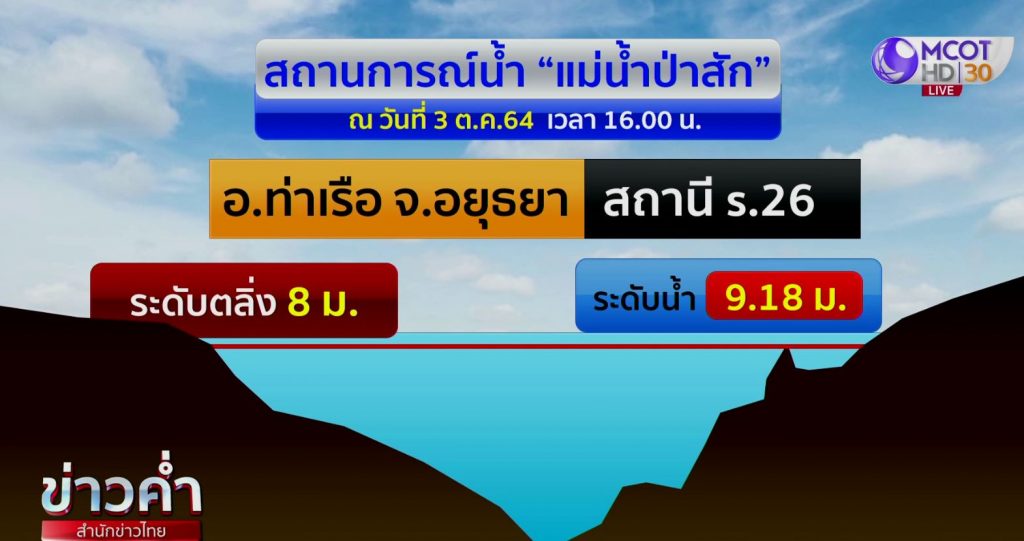 อีกจุดที่สถานการณ์น่าเป็นห่วงคือ บริเวณสถานี s26 อ.ท่าเรือ พระนครศรีอยุธยา ระดับตลิ่งอยู่ที่ 8 เมตร แต่ระดับน้ำ ณ เวลา 16.00 น. อยู่ที่ 9.18 ม. สูงกว่าระดับตลิ่งอยู่ 1.18 เมตร