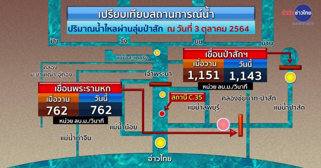 ส่วนสถานีบางไทร จ.พระนครศรีอยุธยา วันนี้มีน้ำไหลผ่าน 3,052 ลูกบาศก์เมตรต่อวินาที ขยับขึ้นจากเมื่อวานที่อยู่ที่ 3,010 ลูกบาศก์เมตรต่อวินาที