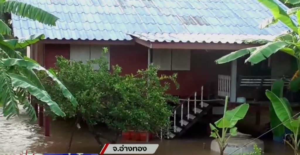 อ่างทอง 4 ต.ค. – คันกั้นน้ำริมเจ้าพระยาทรุดพังกว่า 20 เมตร น้ำทะลักท่วมบ้านเรือนประชาชน ต.จรเข้ร้อง อ.ไชโย จ.อ่างทอง เดือดร้อนกว่า 200 หลัง บางจุดท่วมสูงกว่า 1.50 เมตร