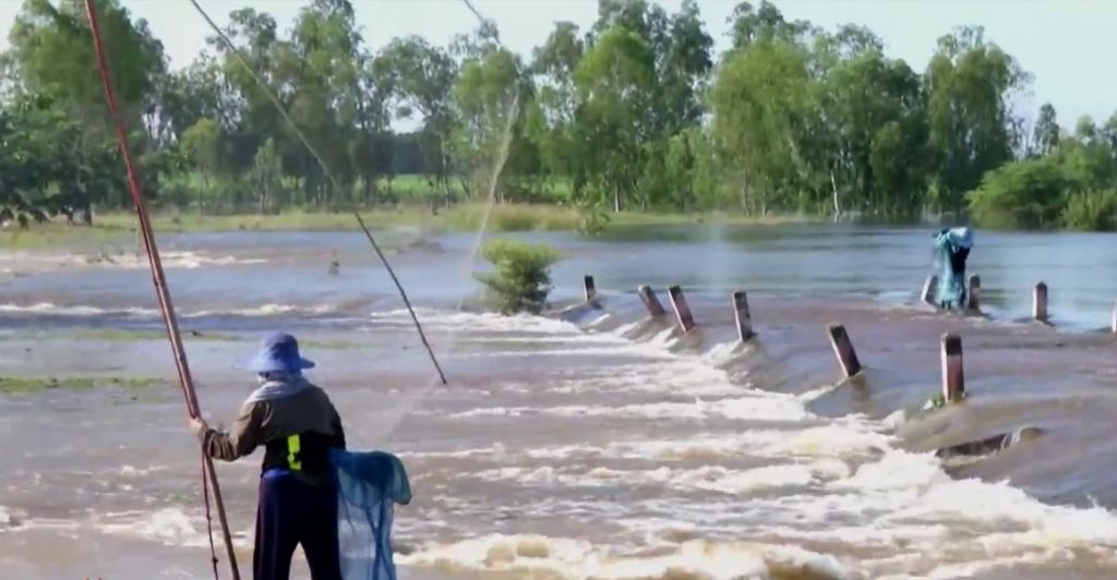 ขณะที่ภาพมุมสูง เห็นถึงมวลน้ำที่ไหลบ่ามาตามพื้นที่ทางการเกษตรล้อมรอบตัดขาดหมู่บ้านโจด และบ้านท่างาม ซึ่งพนังกั้นลำน้ำชีถูกมวลน้ำเซาะขาดเมื่อช่วงสายวานนี้