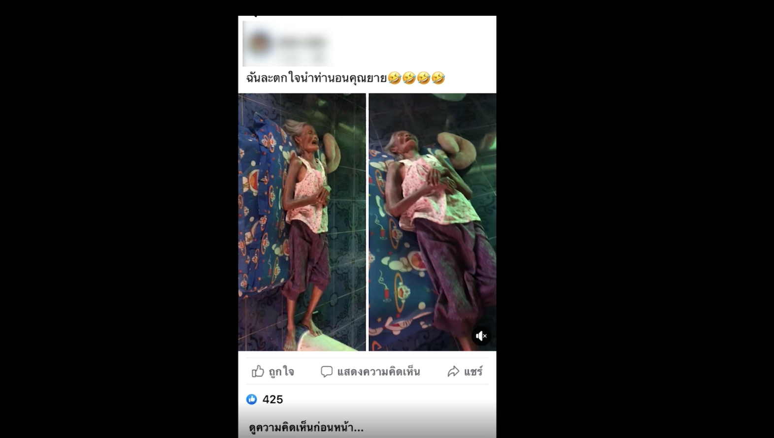 หลังจากคลิปวิดีโอข้อความดังกล่าวถูกโพสต์ มีเพื่อนๆ เข้ามาแสดงความคิดเห็นเป็นจำนวนมาก หลายคนเห็นแวบแรกก็ตกใจไม่แพ้กับเจ้าของโพสต์ เช่น “โอ๊ยพี่ก็ตกใจ ถ้าไม่อ่านแคปชัน, โอ้ยเน้อคุณยาย, โอ้ยยย ตื่นเหมิด (แปลว่า ตกใจหมดเลย), น่าตกใจจริงๆ, โอ๊ยเทอ ทำฉันตกใจ, ยายกำลังนอนเพลินๆ กะไปปุกแกน้อ แพมเอ้ย, หัวใจจะวาย, ยายบอกกำลังสบายเลย”