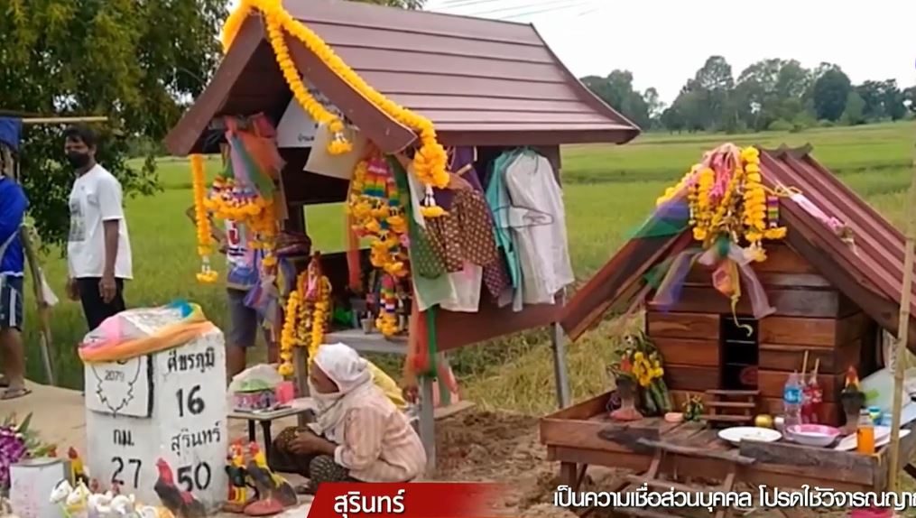 ชาวบ้านที่สัญจรได้ขับรถยนต์มาจอดขอหวยจากหลักกิโลเมตรที่ 27 ถนนสายศีขรภูมิ-รัตนบุรี เผยว่า หลักกิโลเมตรถือว่าเฮี้ยนจริงๆ เมื่อหลายปีมีวัยรุ่นชายคนหนึ่งมานั่งเสียชีวิตตรงนี้ หลังจากนั้นก็เงียบหายไป และมาระยะหลังมีอะไรแปลกๆ เกิดขึ้นตรงหลักกิโลเมตรบ่อยครั้ง บางคนกลับบ้านดึกดื่นมีคนพบเห็นชายนั่งร้องไห้อยู่ริมถนนข้างทาง