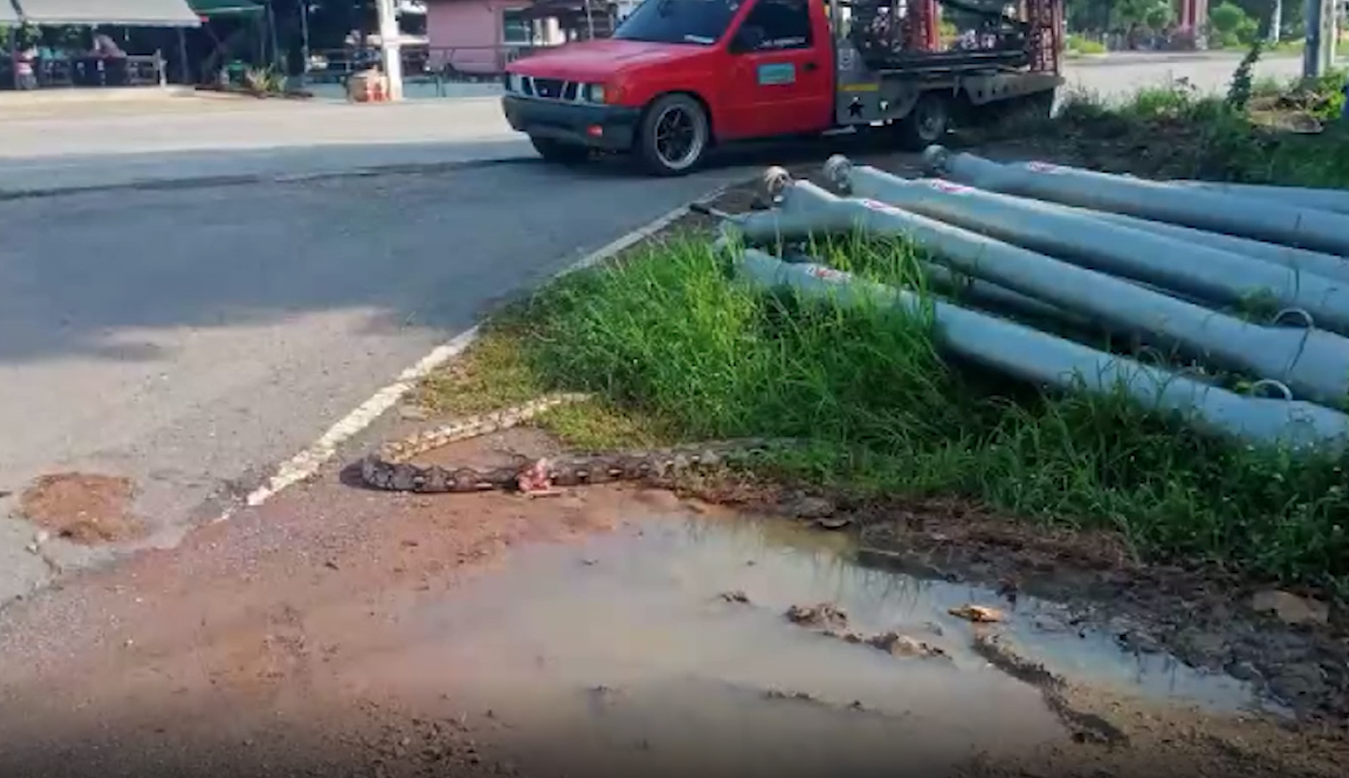 จากการสอบถามชาวบ้าน คาดว่างูตัวดังกล่าว น่าจะเลื้อยมาจากฝั่งร้านต้มเลือดหมู ซึ่งมีหญ้ารกอยู่ข้างร้าน แล้วเลื้อยข้ามมาจนถูกรถชนดังกล่าว ส่วนค่าใช้จ่ายในการรักษางู ชาวบ้านในละแวกนั้นจะช่วยกันแชร์ออกค่ารักษาให้ทั้งหมด.-สำนักข่าวไทย