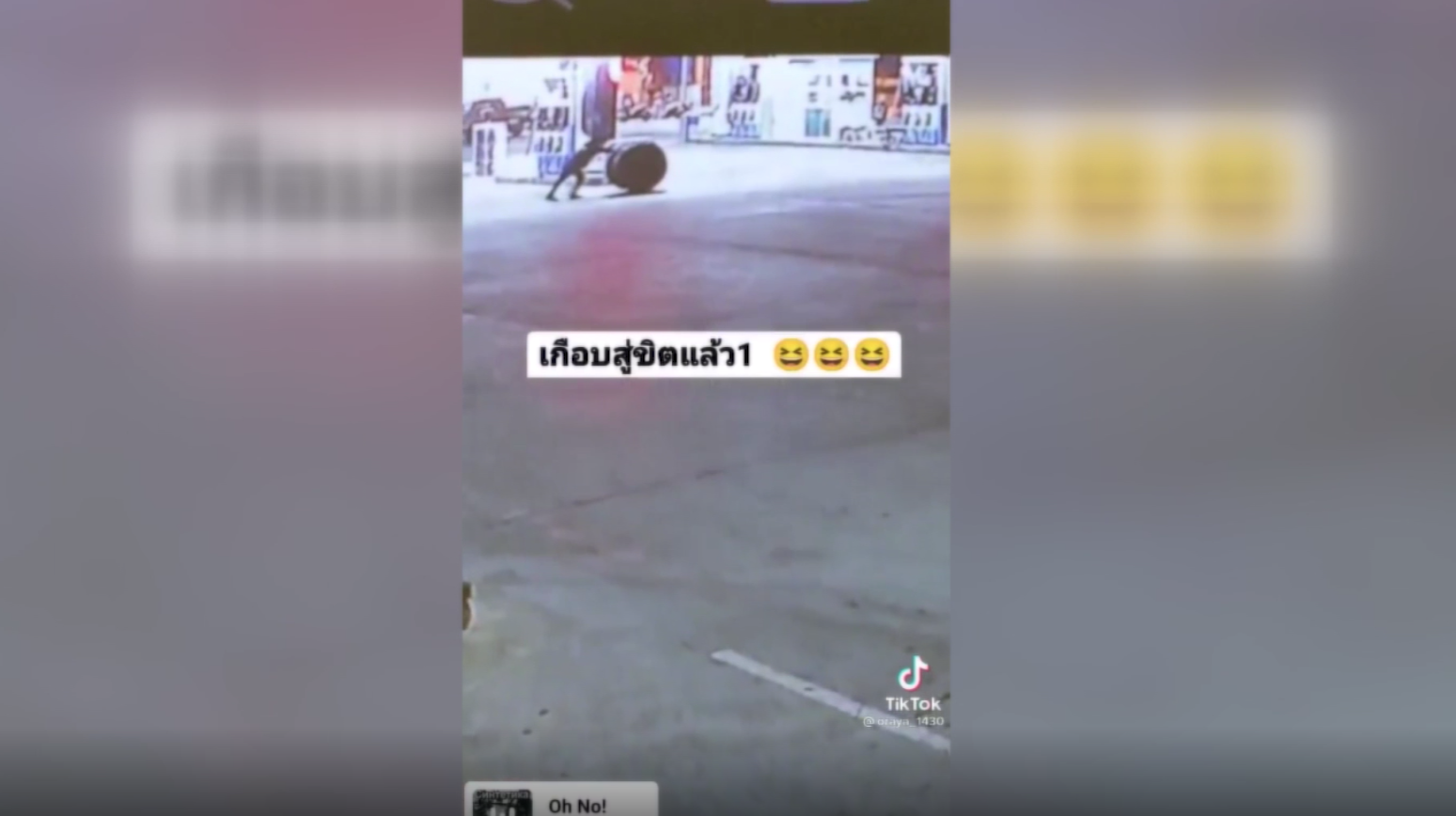 ผู้ใช้ Tiktok “oraya_ptk” โพสต์คลิปกล้องวงจรปิดบริเวณปั๊มน้ำมันแห่งหนึ่ง ถนนสกลนคร-นครพนม ระบุว่า “ดีนะที่ไหวตัวทัน” เป็นภาพผู้ให้บริการในปั๊มน้ำมันกำลังปฏิบัติงาน ในคลิปเห็นว่าชายคนนี้กำลังรอให้บริการตามปกติ มีรถบรรทุกพ่วงค่อยๆ วิ่งเข้ามาในปั๊ม ขณะรถผ่านตู้จ่ายน้ำมันไปนั้น ปรากฏว่าล้อรถบรรทุกพ่วงด้านหลัง หลุดออกมา ค่อยๆ กลิ้งผ่านตู่จ่ายน้ำมันไป จังหวะนั้นชายในคลิปเหลือบหันหลังไปเห็นพอดี จึงรีบวิ่งเข้าไปโดยการดันล้อรถพ่วงเอาไว้จนหยุด