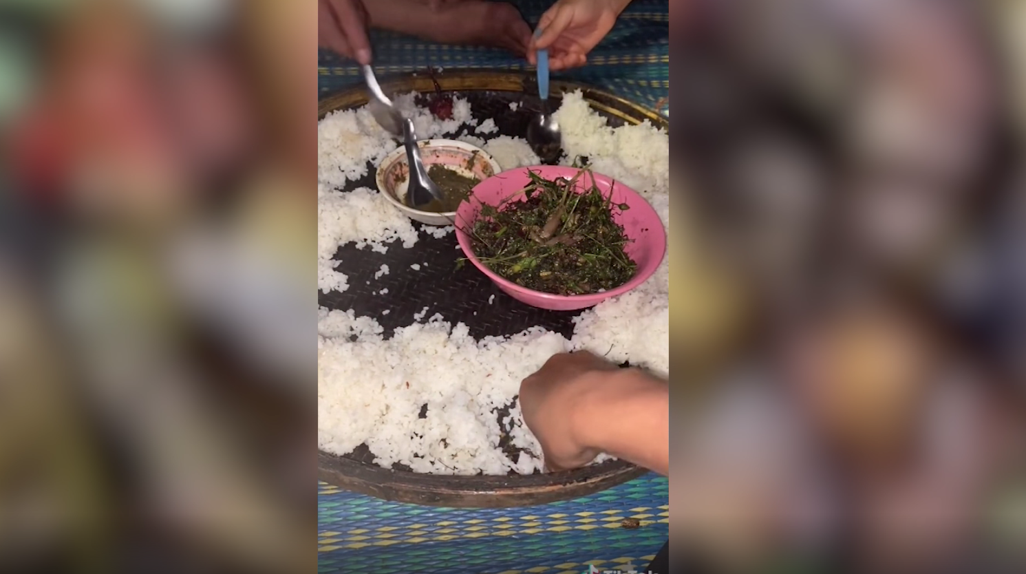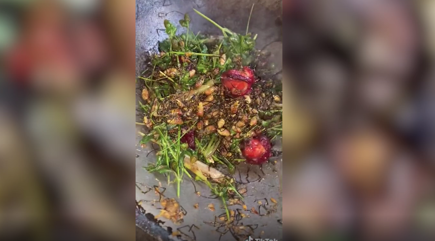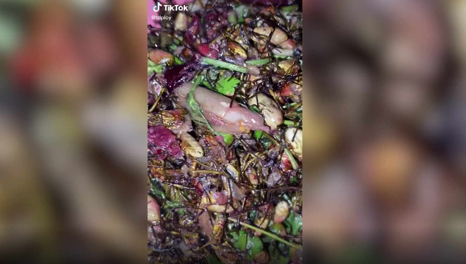 ในโซเชียลมีเดีย ชาวเน็ตแชร์คลิปจากติ๊กต็อก ของวัยรุ่นชาวปกาเกอะญอรายหนึ่ง ซึ่งแนะนำเมนูเด็ด “ผัดเผ็ดใยแมงมุม” ตั้งแต่เริ่มกระบวนการจนถึงสามารถกินได้เลย ในคลิปเขียนบรรยายเมนูดังกล่าวด้วยว่า “อาหารที่อร่อยที่สุดในโลก” จากนั้นเป็นการแนะนำขั้นตอนการเตรียมวัตถุดิบในการทำ ที่มีทั้งพริก เกลือ ขมิ้น ข่า กระเจี๊ยบ และวัตถุดิบสำคัญคือ แมงมุม จากนั้นปรุงรส ใส่ผักชี พร้อมกิน