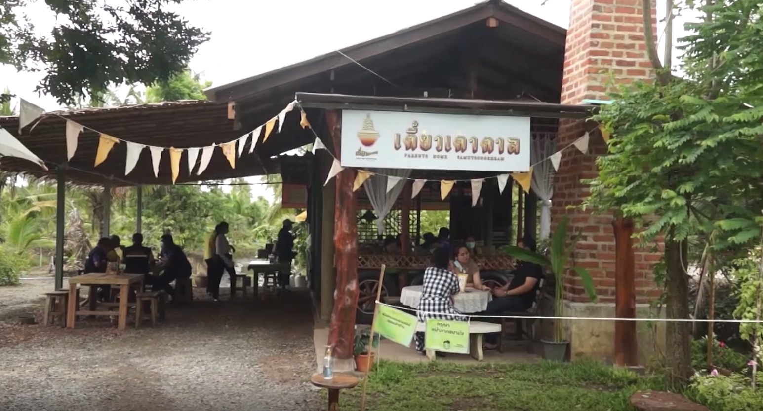 สมุทรสงคราม 3 ธ.ค.- สองสามีภรรยา ที่อดีตเคยทำน้ำตาลมะพร้าวมานานนับปี แต่ด้วยอายุที่เพิ่มมากขึ้นจึงผันตัวเองมาเปิดร้านก๋วยเตี๋ยว โดยดัดแปลงโรงเคี่ยวน้ำตาลมะพร้าวทำเป็นร้านก๋วยเตี๋ยวน่ารักๆ ชื่อ “เตี๋ยวเตาตาล” ชามละ 20 บาท