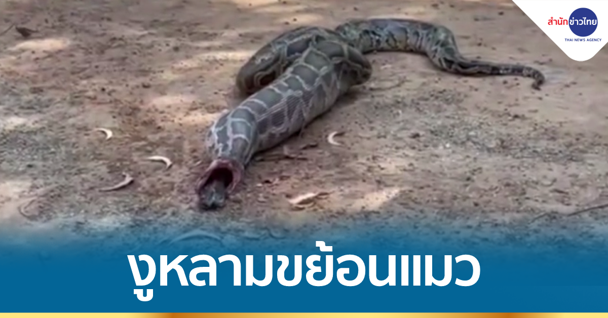 สุรินทร์ 8 ธ.ค.- เจ้าของบ้านผงะ เจองูหลามตัวใหญ่ยาวประมาณ 2.5 เมตร ติดอยู่ประตูรั้ว ขู่ฟ่อๆ เสียงดัง ก่อนเลื้อยเข้าไปซุกในโพรงไม้ จึงโทรแจ้งกู้ภัยสว่างจรรยาธรรม จุด อ.ปราสาท จ.สุรินทร์ มาจับ แต่งูก็ขู่ตลอดเวลา พอดึงตัวออกมาได้ ระหว่างจับใส่ถุง ปรากฏว่าเจ้างูหลามได้ขย้อนแมวตัวใหญ่ออกมา