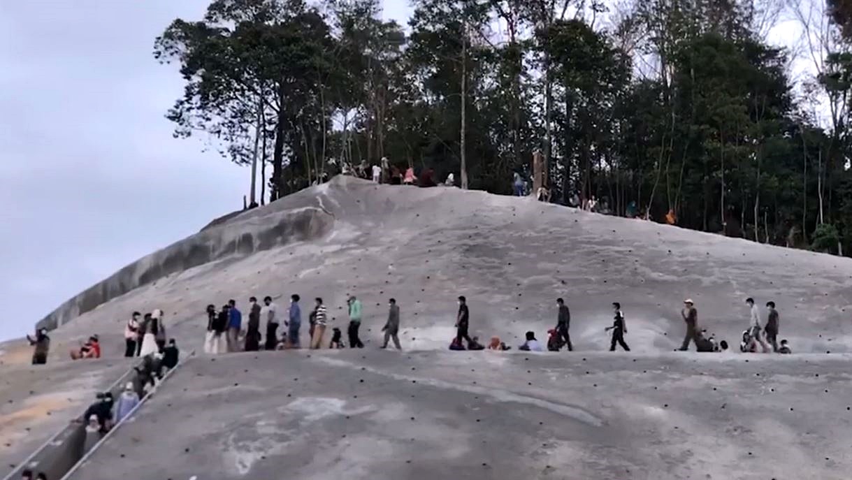 นายสาธิต ดาเด๊ะ ประธานชุมชนบ้านกาแป๊ะฮูลู กล่าวว่า ชุมชนบ้านกาแป๊ะฮูลู อยู่ใกล้พรมแดนระหว่างประเทศไทยและประเทศมาเลเซีย กรมทางหลวงได้สร้างถนนเลียบแนวชายแดนไทย-มาเลเซีย และสร้างดาดคอนกรีต ซึ่งเป็นหน้าผาปูนซีเมนต์ เพื่อป้องกันน้ำกัดเซาะหน้าดิน ป้องกันดินสไลด์ที่อาจเกิดขึ้น นอกจากประโยชน์ของการก่อสร้างแล้ว ยังเกิดความสวยงามขึ้นด้วย จึงทำให้มีประชาชนและนักท่องเที่ยวเดินทางมาเที่ยวชมและถ่ายภาพกันเป็นจำนวนมาก จนกลายเป็นแลนด์มาร์กแห่งใหม่ของ อ.เบตง แต่ต้องระมัดระวังเรื่องความปลอดภัย เพราะหน้าผาปูนซีเมนต์มีความสูงหลายเมตร หากตกลงมาอาจทำให้เสียชีวิตได้ ผู้ที่พาบุตรหลานมาเที่ยวต้องดูแลเด็กอย่างใกล้ชิด เนื่องจากวัตถุประสงค์ของการก่อสร้าง ไม่ได้รองรับการท่องเที่ยว แต่พอมีชาวบ้านในพื้นที่ขึ้นมาถ่ายรูปความสวยงามของพระอาทิตย์ลงสื่อโซเชียล ทำให้ผู้คนเดินทางมาเที่ยวกันมากขึ้น. – สำนักข่าวไทย