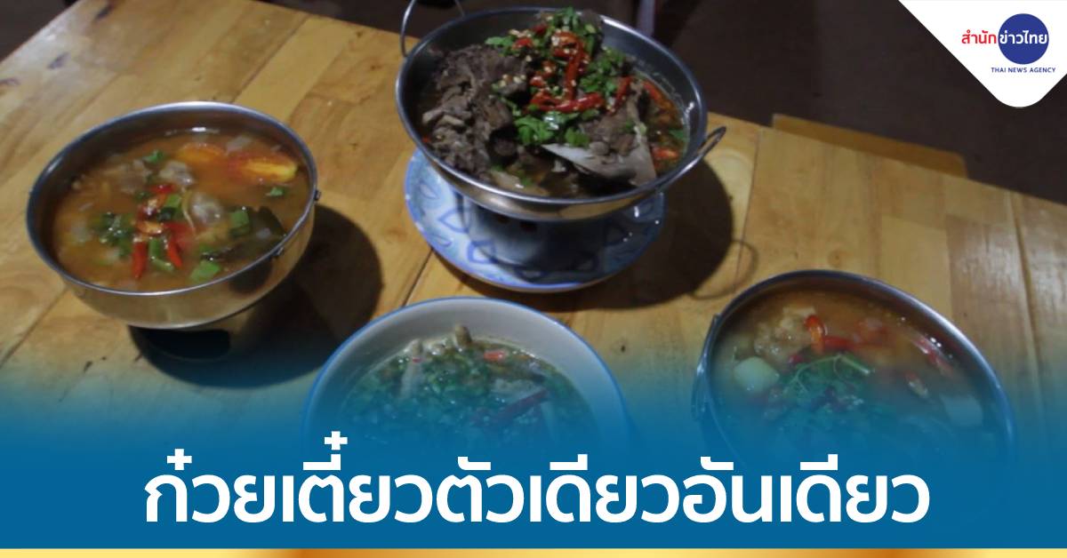 นางสาวเขมจิรา อลุนพรต อายุ 41 ปี หรือเจ๊แก้ว เจ้าของร้าน กล่าวว่า ปกติที่ร้านจะขายเมนูก๋วยเตี๋ยวกับหม้อไฟเป็นหลัก เน้นราคาประหยัด ตอนนี้คิดค้นเมนูเด็ดเมนูใหม่ เอาใจลูกค้าสายโคขุนที่ต้องใช้สูตรพิเศษต้มจนนุ่มเปื่อย หาทานยาก ก่อนต้มซุปต้องนำมาเผาไฟ ขูดหนังและขนออก ก่อนที่จะนำไปสับเป็นชิ้น และนำมาตุ๋นเป็นเวลา 4-5 ชั่วโมง ก่อนนำมาปรุงรสกับน้ำซุปสูตรเด็ด ผสมเครื่องเคียงสมุนไพรเป็นหม้อไฟ โดยซุปรวมอันเดียวตัวเดียว ขายในราคาหม้อละ 100 บาท มีสรรพคุณเป็นยาชูกำลังสำหรับท่านชายด้วย อยากชิมต้องสั่งจองล่วงหน้า. -สำนักข่าวไทย