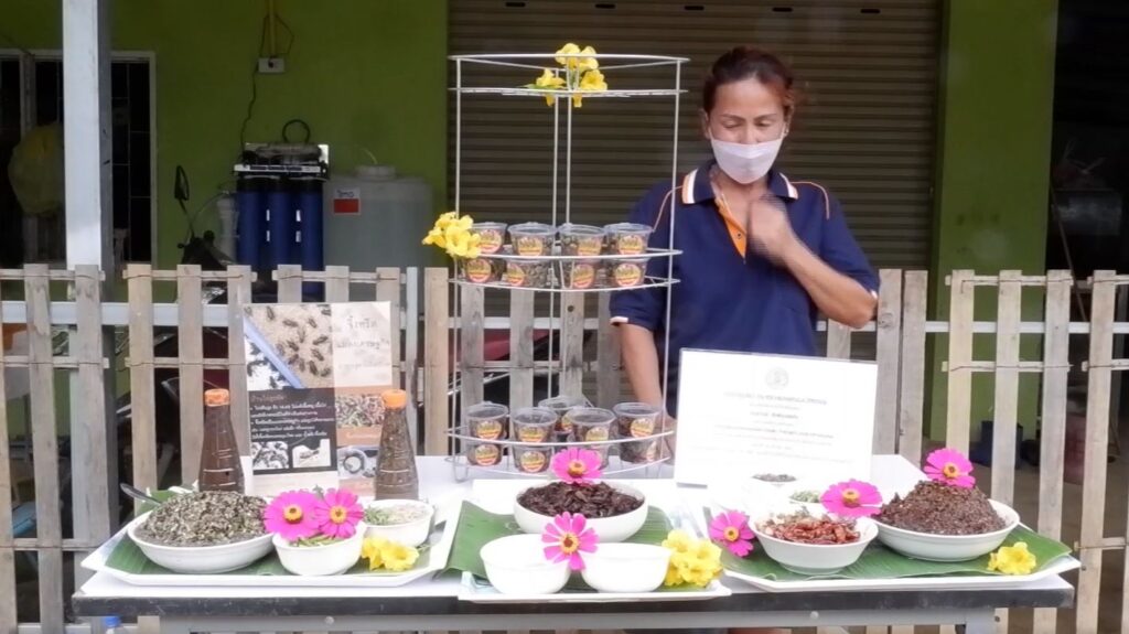 ขณะเดียวกันเมื่อต้องการสร้างมูลค่าเพิ่มก็ดัดแปลงเป็นทอดสมุนไพรแล้วก็มาทำเป็นน้ำพริกจิ้งหรีด น้ำพริกเผาจิ้งหรีด พริกปลาร้าจิ้งหรีด ล่าสุดเริ่มทดลองทำแหนมจิ้งหรีด อนาคตก็จะเพิ่มสินค้าอาหารเป็นส้มตำจิ้งหรีด ลาบจิ้งหรีดอีกด้วย ผู้สนใจสามารถติดต่อได้ที่เบอร์โทรศัพท์ 084 559 7241 หรือ Facebook ชื่อบ้านไร่สุรพัศ. -สำนักข่าวไทย