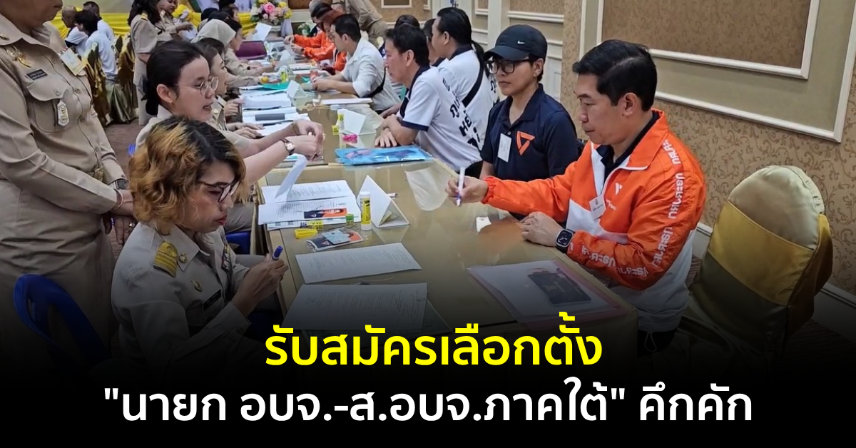 23 ธ.ค. – การรับสมัครนายกและสมาชิกองค์การบริหารส่วนจังหวัด (อบจ.) ของภาคใต้ วันแรกคึกคัก เพราะหลายจังหวัดมีตัวแทนบ้านใหญ่มาสมัคร พร้อมมีผู้มาให้กำลังใจกันอย่างล้นหลาม.-สำนักข่าวไทย