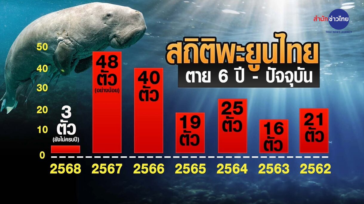 ภูเก็ต 17 ม.ค. – พะยูนเป็นสัตว์สงวนทางทะเลชนิดแรกของไทย ซึ่งตอนนี้พบว่าประชากรพะยูนที่เหลืออยู่ กำลังเข้าขั้นวิกฤติ เพราะยังมีพะยูนตายต่อเนื่อง ล่าสุดเดือนนี้ยังไม่ทันสิ้นเดือน พะยูนตายไปแล้วถึง 3 ตัว ขณะที่พะยูนที่มีสำรวจพบอยู่ในภูเก็ต ตอนนี้ก็มีความเสี่ยงที่จะตายเพิ่ม จากภัยคุกคามที่มีรอบด้าน.-สำนักข่าวไทย