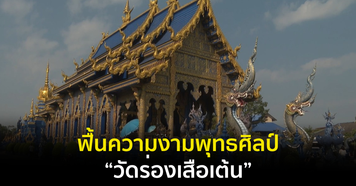 เชียงราย 2 มี.ค. – น้ำท่วมใหญ่ในตัวเมืองเชียงราย เมื่อปลายปีที่แล้ว ทำให้วัดและโบราณสถานหลายแห่งเสียหายอย่างหนัก รวมทั้งวัดร่องเสือเต้น หรือวัดสีน้ำเงิน ที่เต็มไปด้วยพุทธศิลป์ล้านนาอันงดงาม ศิลปินผู้สร้างวัดและผู้มีจิตศรัทธาร่วมแรงร่วมใจบูรณะวัดจนกลับมางดงามเหมือนเดิม.-สำนักข่าวไทย